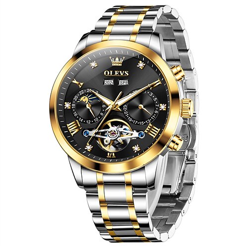Die neue Olevs Herren-Businessuhr mit leuchtender Mondphasen- und Kalenderanzeige ist eine vollautomatische, skelettierte, multifunktionale, wasserdichte Herren-Sportuhr mit langer Lebensdauer.