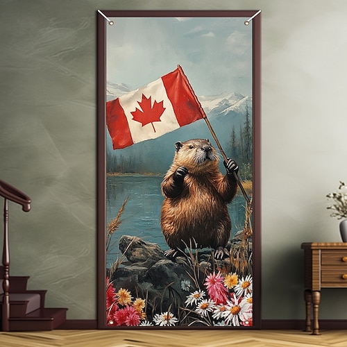 Kanada-Tag Patriotische Türdekorationen Türabdeckungen Cervus Canadensis Türteppich Türvorhang Dekoration Hintergrund Innen/Außen Türbanner für die Haustür Landhaus