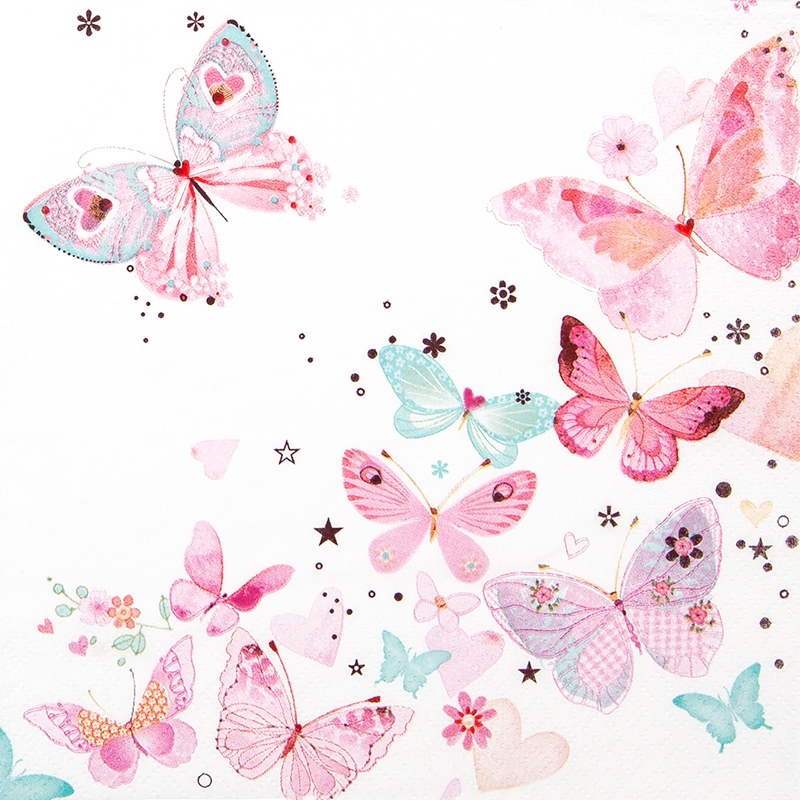 Home Fashion, Lovely Butterflies, Lunch-Servietten aufgefaltetes Maß 33 cm x 33 cm, im Viertelfalz, 20 Stück pro Pack