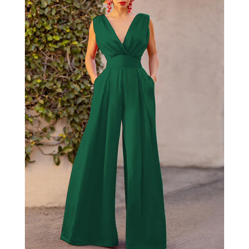 Women's Normal Jumpsuit Elegant Solid Color Sleeveless Wide Leg V Neck Pleated Vacation Holiday Regular Fit Black Army Green Red Summer