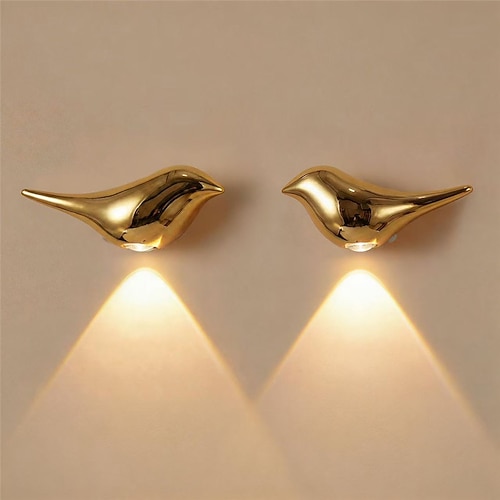 2 luci da parete a LED a tre colori con temperatura regolabile, a forma di uccello, ricarica USB, rilevamento del movimento, senza fili, dimmer magnetico, luce notturna, luce decorativa per soggiorno