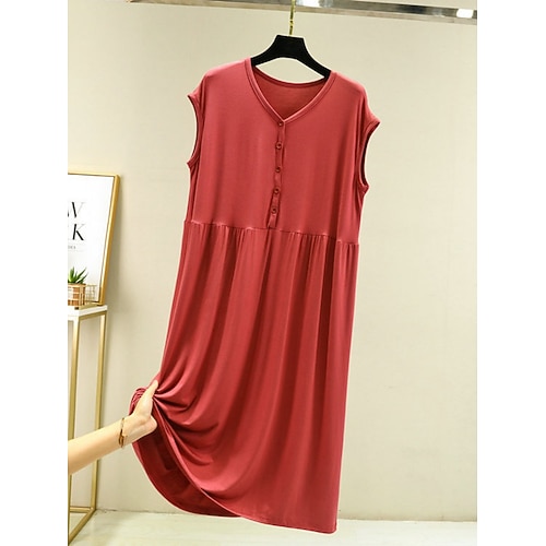 Per donna Abito Midi Abiti ispirati al lino Vestito Casual Streetwear Essenziale Vacanza Streetwear Vestibilità comoda Mezza Manica Scollo a V Rosso Viola Cachi Verde militare Autunno Inverno