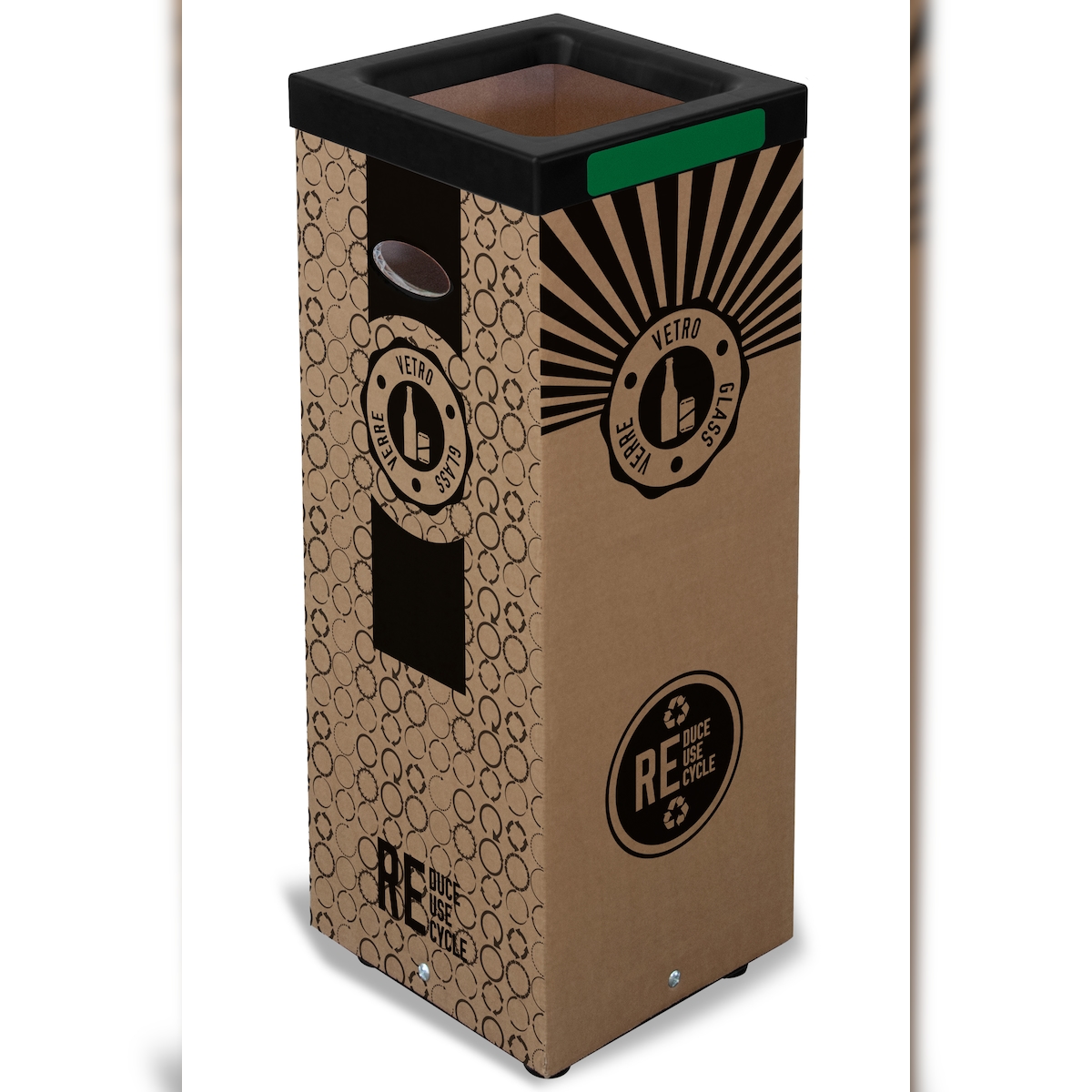 Stil Casa Kartonabfalleimer, 38 x 38 x h. 80 cm, Grafische Bedruckung Glas, Kunststoffdeckel, Kit mit bunten Aufklebern, Metallboden, 100 Liter.