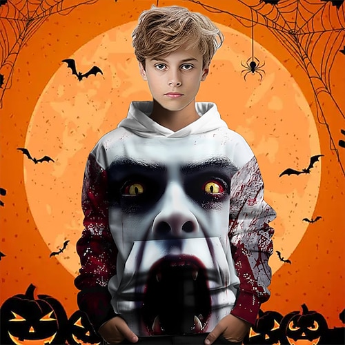 Halloween Jungen 3D Grafik Kapuzensweatshirt Langarm Frühling Herbst Mode Streetwear Kinder 4-12 Jahre Mit Kapuze Outdoor Lässig Täglich Normale Passform