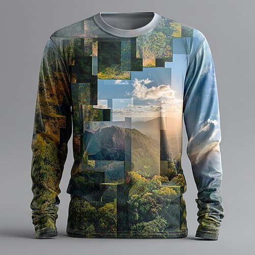 Herren Optische Täuschung 3D T Shirt Langarm T-Shirt 3D-Druck Rundhalsausschnitt Hemd Mode Übertrieben Straße Täglich Blau 2# Blau Sommer Frühling Herbst Bekleidung S M L XL XXL XXXL
