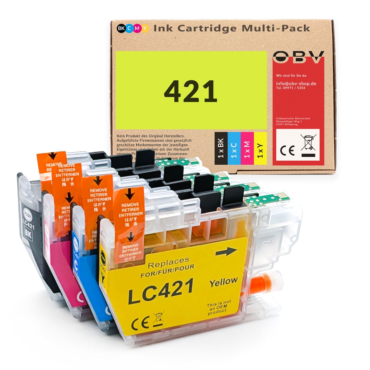 OBV Kompatibel Druckerpatronen Set ersetzt Brother LC-421VAL LC-421 – 4 Farben – für Brother DCP-J1050DW J1140DW J1800DW MFC-J1010DW