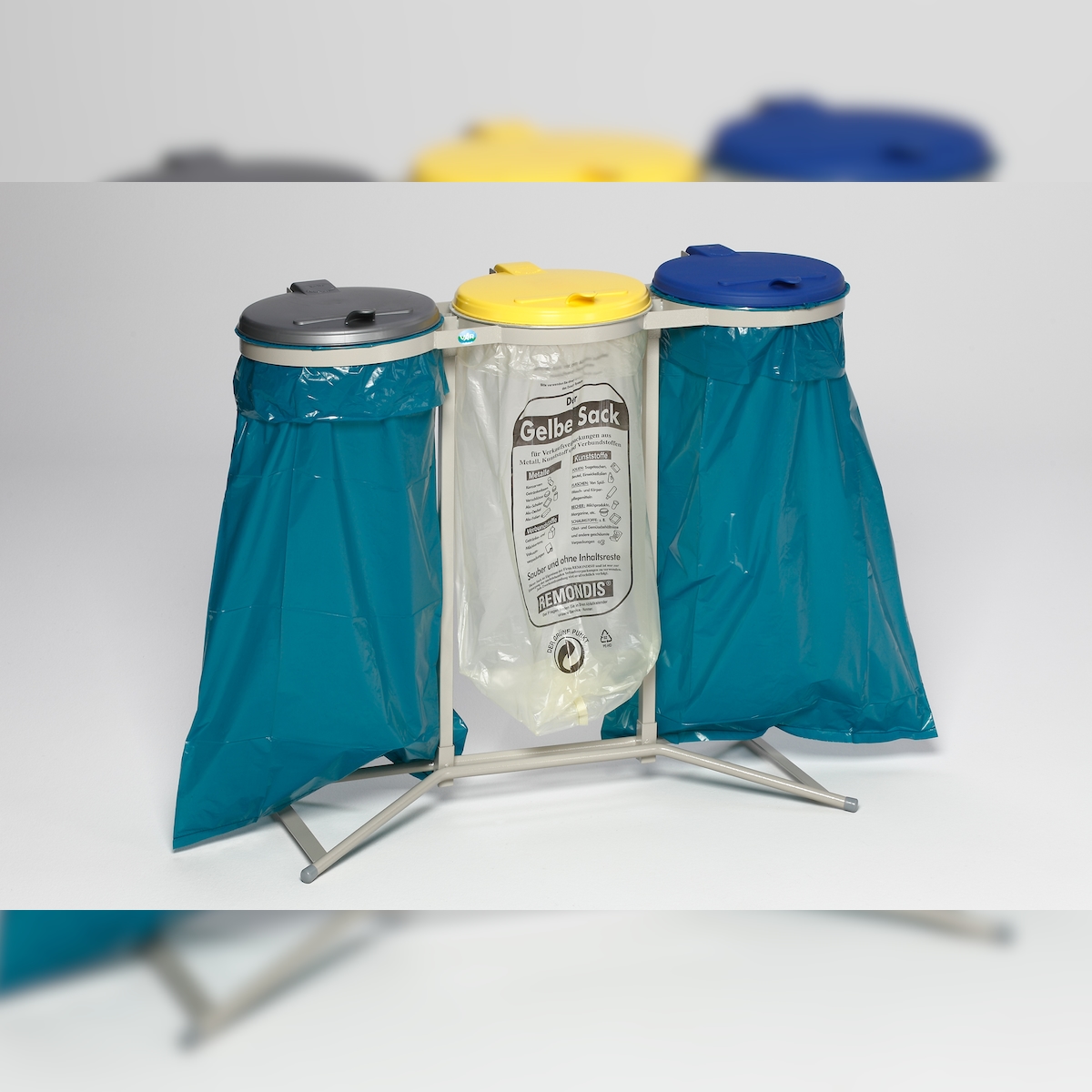 PROREGAL Robuster Abfallsammler für Wertstoffsortierung 3-Fach | Stationär | 3x 120 Liter, HxBxT 95x117,5x44cm | Stahl | Mülleimer