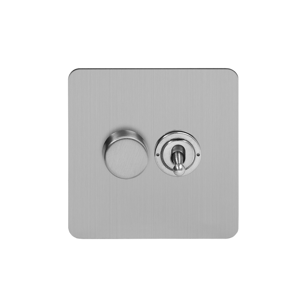 Soho Lighting Brushed Chrome Flat Plate 2 Gang Dimmer and Toggle Switch Combo (1x150W LED Dimmer 1x20A 2 Way Toggle)