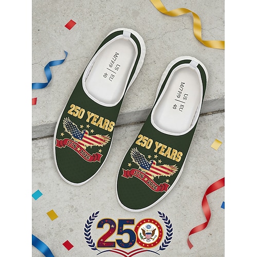 Sneakers slip-on patriottiche blu da uomo: scarpe da passeggio leggere e traspiranti con grafica della bandiera americana e dell'aquila e design per il 250° anniversario, ideali per abbigliamento
