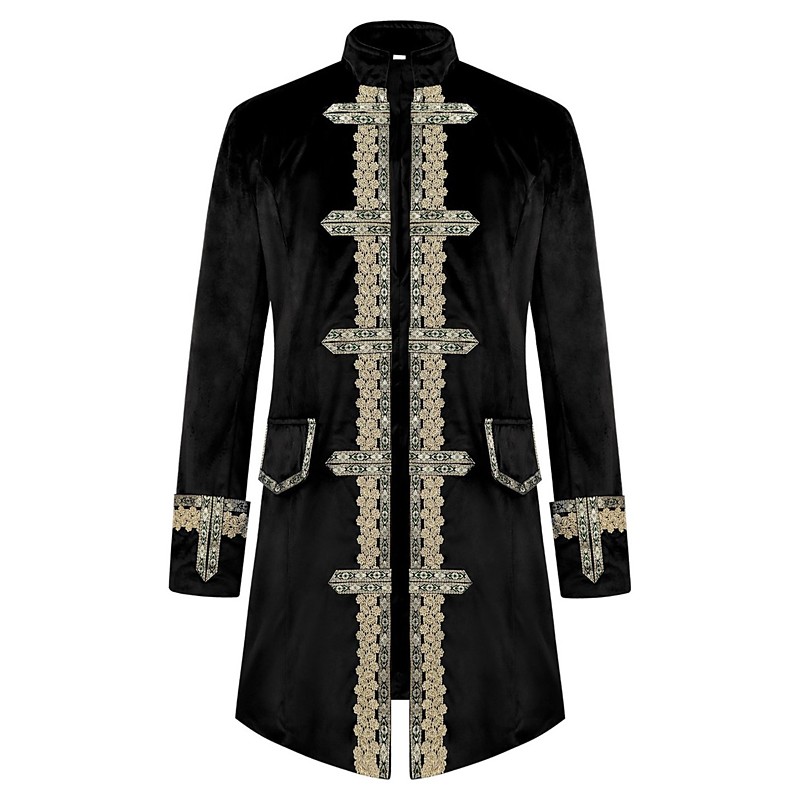 Retro Vintage Gothic Rococo Coat Long Sleeves Prince Aristocrat Embroidered Stand Collar Fancy Dress Men's Carnival Masquerade Carnival Masquerade Adults Coat Winter
