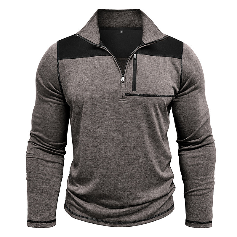 Men's Polo Shirts Quarter Zip Polo Daily Wear Date Quarter Zip Long Sleeve Fashion Basic Color Block Patchwork Zipper Spring Fall Regular Fit Wine Royal Blue Green Khaki Light Grey Dark Gray Polo