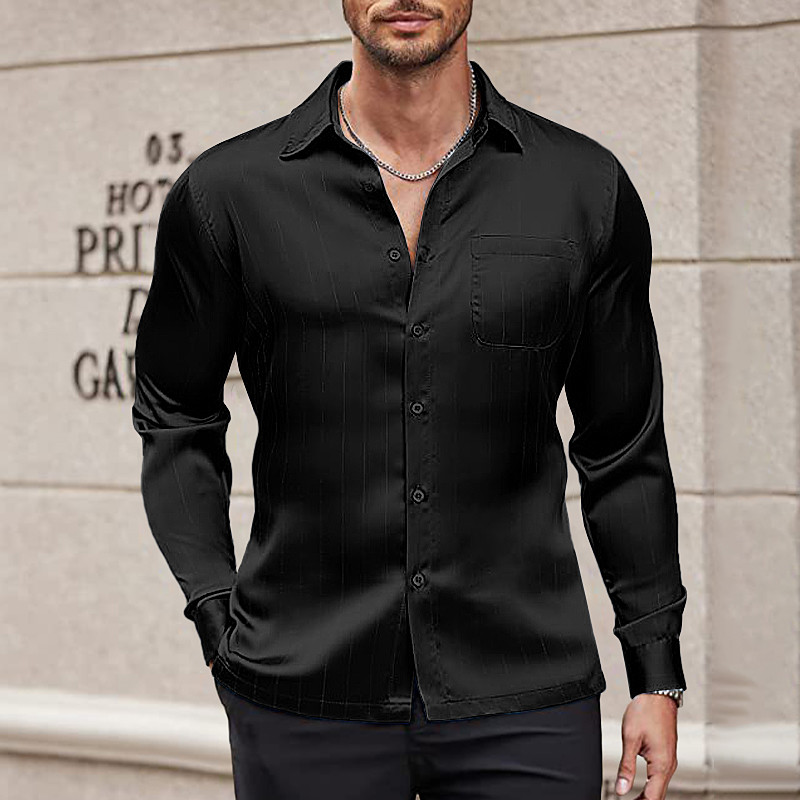 Men's Shirt Satin Shirt Dress Shirt Casual Shirt Button Up Shirt Prom Shirt Plain Formal Wedding Light Blue Black White Wine Long Sleeve Lapel All Seasons Clothing Apparel