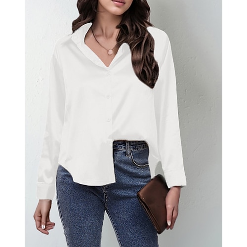 Per donna Camicia Blusa Semplice Elegante Manica Lunga Colletto a Camicia Top Regolari Quotidiano Ferie Uscire Bottoni Bianco Giallo Blu Reale Viola Marrone Estate Primavera