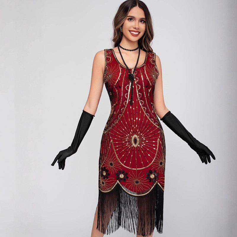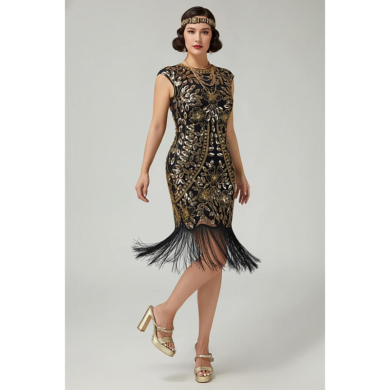 Roaring 20s 1920s Knee Length Flapper Dress Sleeveless The Great Gatsby Sequins Fringe Scoop Neck Fancy Dress Women's Christmas Carnival Masquerade Retro Theme Party Charleston Dance Adults Dress