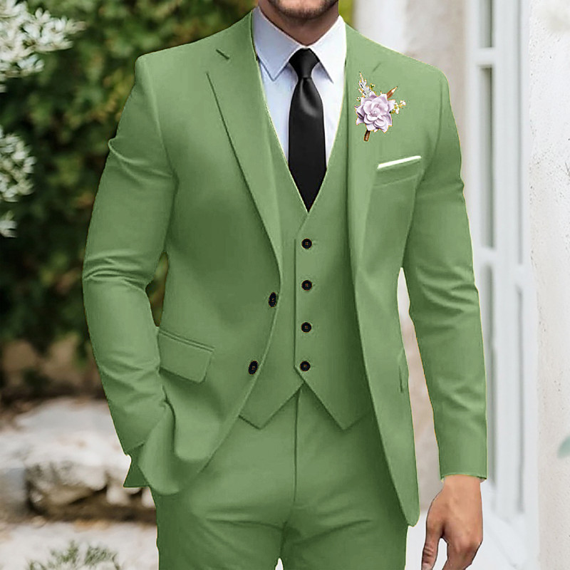 Men's Wedding Business Suits Notch Lapel Grape Sage Formal Solid Colored Standard Fit 3 Piece Single Breasted Two-buttons