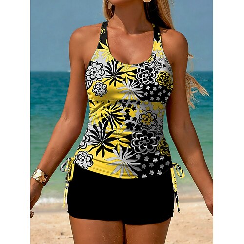 Per donna Costume da bagno Tankini 2 pezzi Tropicale Boyleg Asciugatura Rapida Elastico Senza Maniche Costume da Bagno Costume da bagno Surf Spiaggia Nuoto Estate