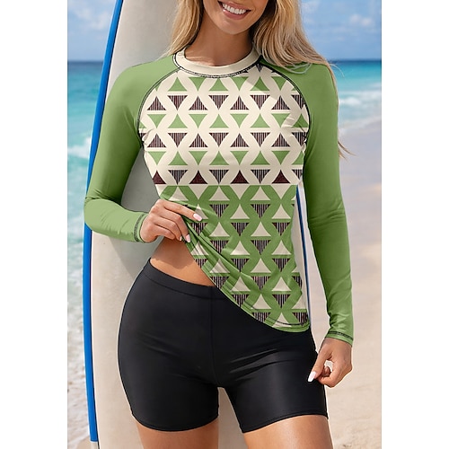 Per donna Costume da Bagno Rash Guard Top sottomuta Costumi da bagno tankini Geometrico 2 Pezzi Imbottitura rimovibile Boyleg Protezione Solare UV UPF50 Elastico Manica Lunga Costume da Bagno Top