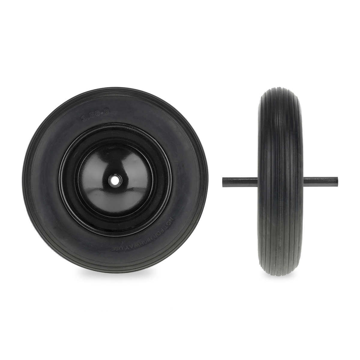 Relaxdays Schubkarrenrad 3.50-8, Vollgummireifen mit fester Achse, Stahlfelge, Ersatzrad Schubkarre, 120 kg, schwarz