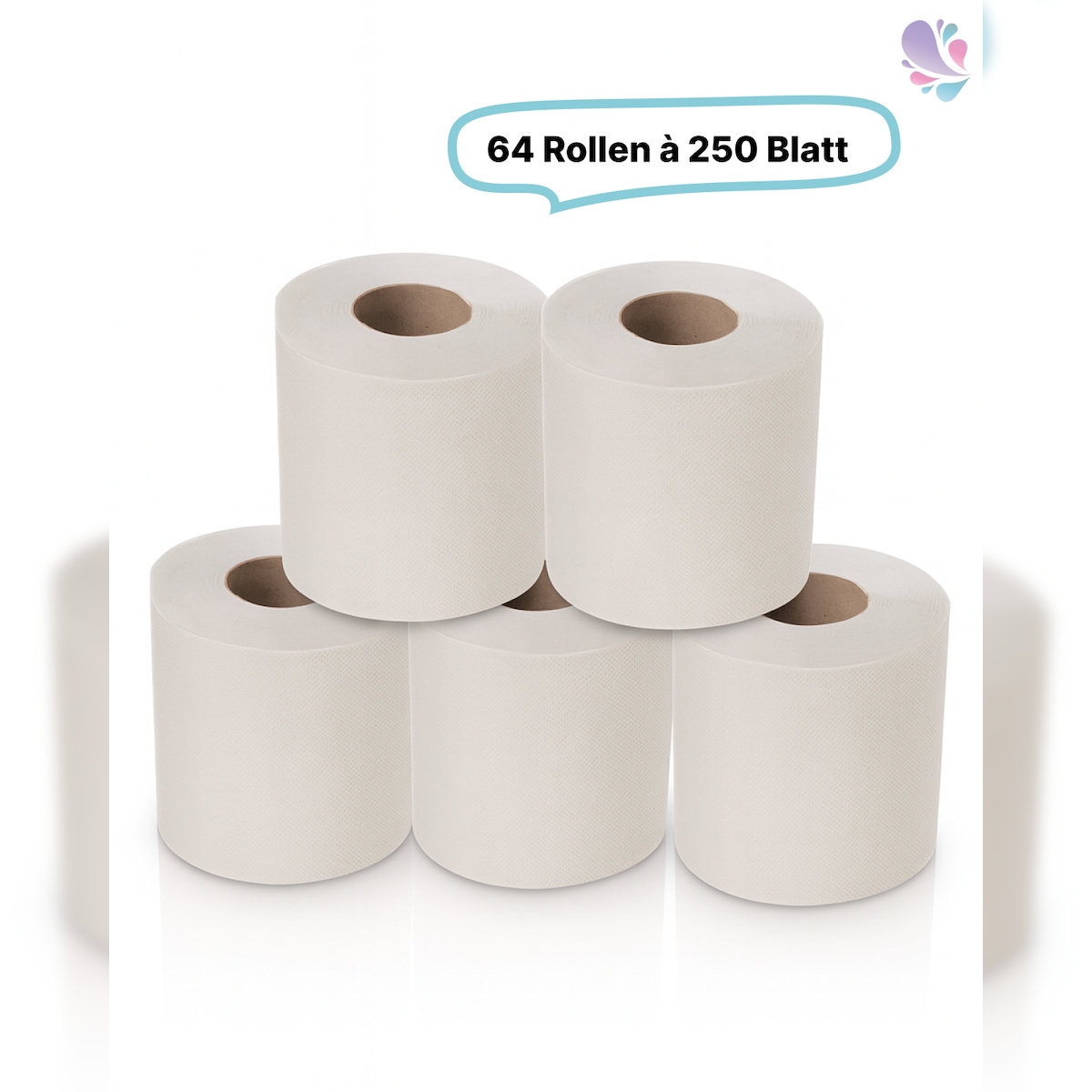 Blanc HYGIENIC 64 Toilettenpapierrollen SET, Rolle je 27,5m, 2-lagig, Recyclingpapier, hochweiß, saugfix, 16.000 Blatt, 9,5 x 11 cm