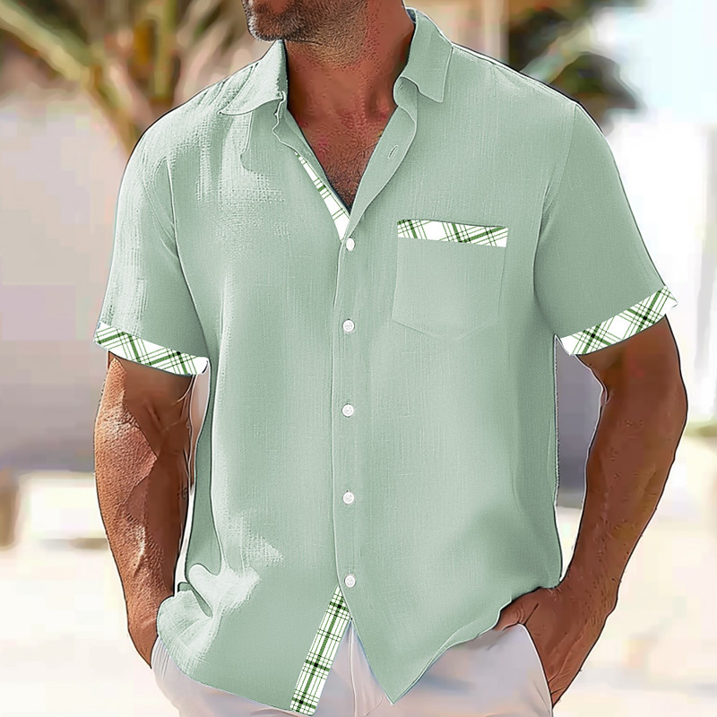 Men's Geometric Check Grid / Plaid Shirt Button Up Shirt Short Sleeve Fashion Casual Outdoor Vacation Daily Summer Turndown 3D Print Linen Like Shirt Pink Blue Green
