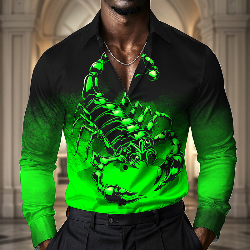 Men's Gradient Color Scorpion Shirt Satin Shirt Dress Shirt Long Sleeve Vintage Retro Vacation Dailywear Summer Spring Fall Turndown 3D Print Button Up Shirts Red Blue Green