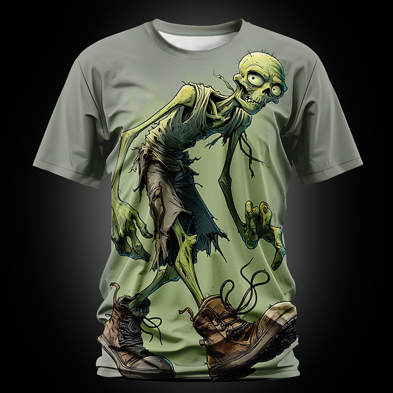 Halloween Men's Optical Illusion Zombies 3D T Shirt Short Sleeve T shirt 3D Print Crew Neck Shirt Exaggerated Designer Horror Party Street Holiday Green Summer Spring All Seasons Clothing Apparel S M