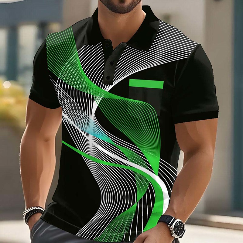 Men's Geometric Polo Short Sleeve Polo Shirts Collared Shirts Business Casual School Athleisure Daily Wear 3D Print Summer Black White Red