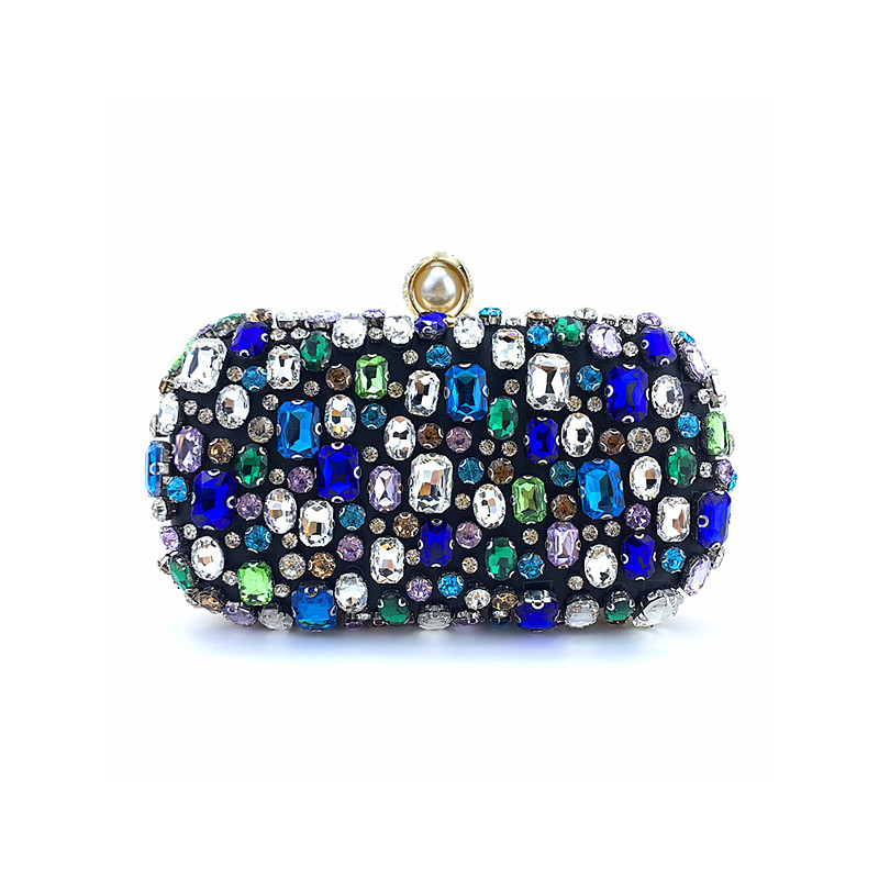 Women's Polyester Clutch Bag with Gemstone Embellishments, Chain Shoulder Strap, Large Capacity, Multiple Colors – Perfect for Weddings and Evening Parties