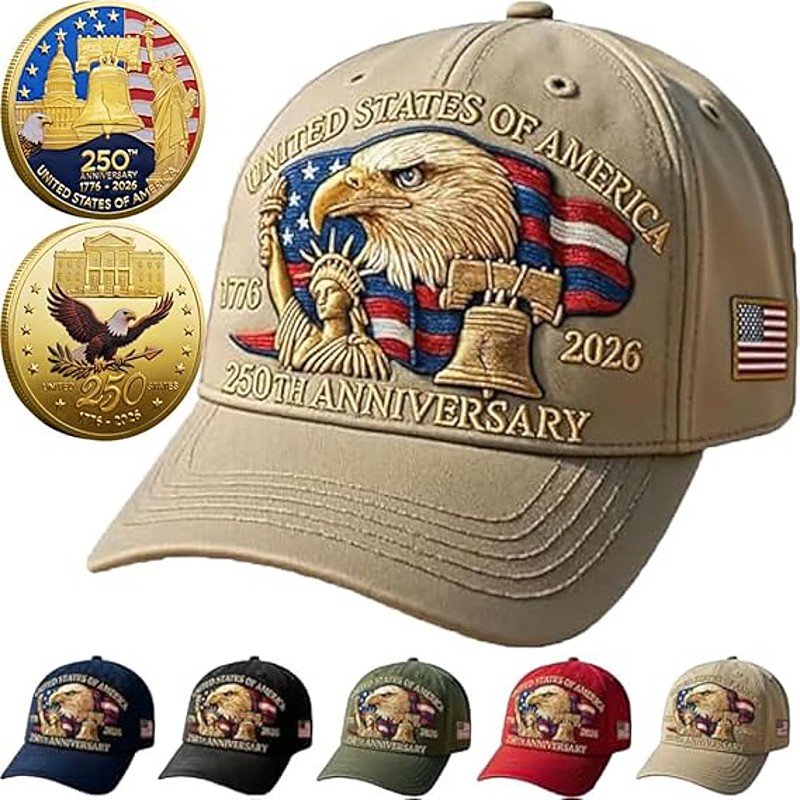 United States 250th Anniversary Hat with 2 Pcs Commemorative Coins,Eagle Liberty 250 Year American Anniversary Digital Printed Cap 4th of July Patriotic Gift Semiquincentennial