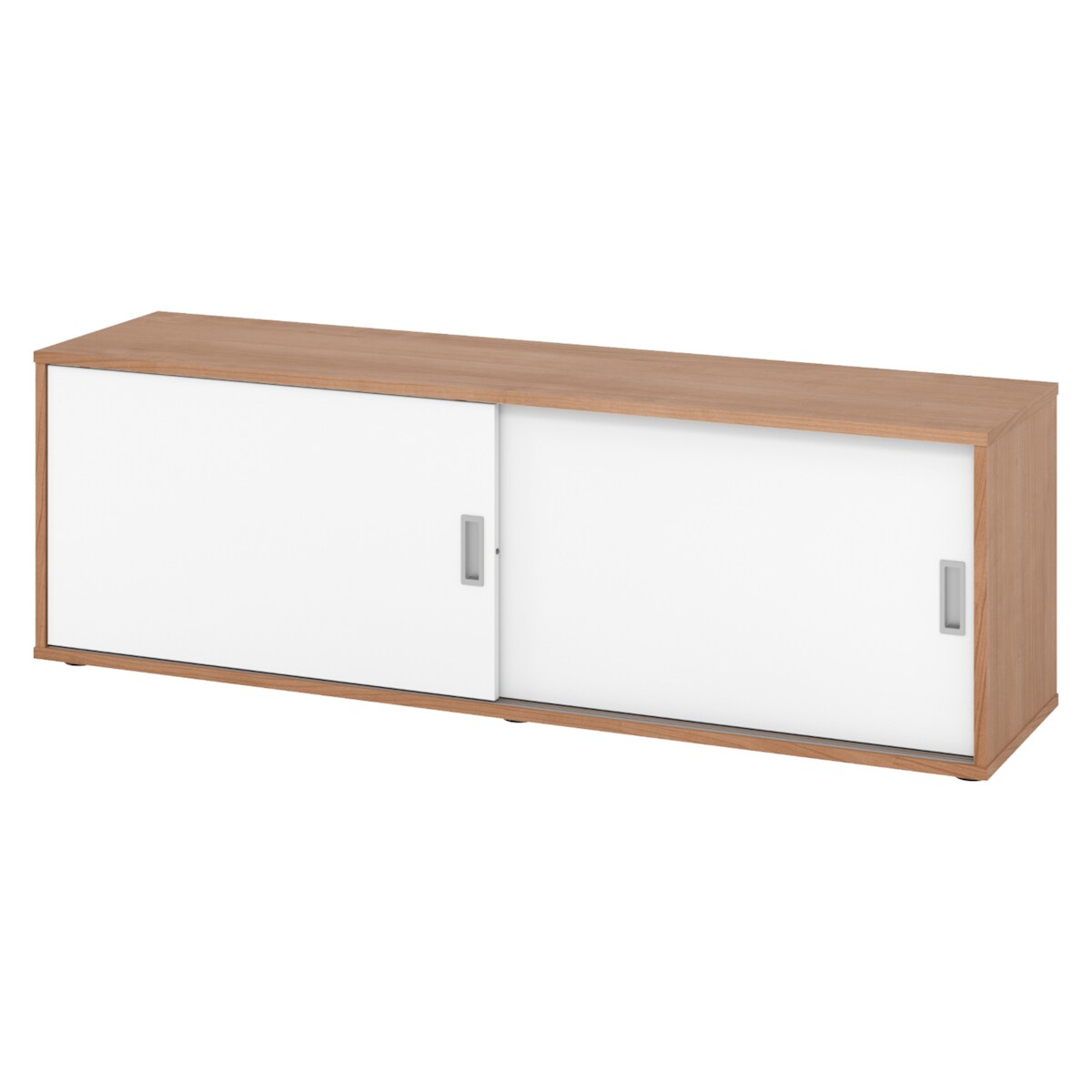 bümö Lowboard Schiebetürenschrank in Nussbaum/Weiß - Büromöbel Sideboard aus Holz, 160 cm breit, Büroschrank nur 40 cm schmal, Büro Schrank mit
