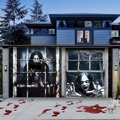 Halloween Copertura per porta del garage Grande appeso Unità di contenimento degli zombi 3D Gotico punk oscuro Da serata All'aperto Sfondi di ripresa Yarda Casa infestata Decorazioni Parete Porta
