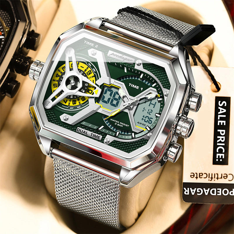 POEDAGAR Trendy Men's Watches Date Week LED Electronic Military Man Watch Waterproof Stainless Steel Mesh Sport Quartz Men Watch