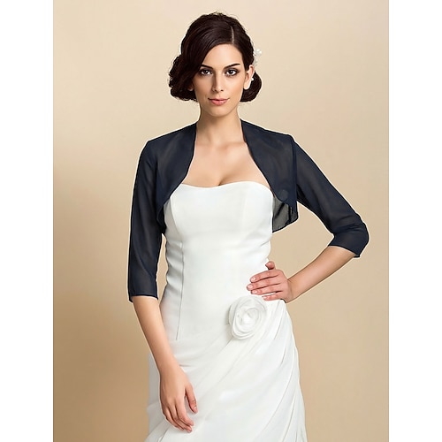 Shawls wraps da matrimonio per donna bolero da sposa protezione solare Sexy pura manica 3/4 wraps da matrimonio in chiffon con colore puro per matrimoni abito da primavera e estate per impressionare