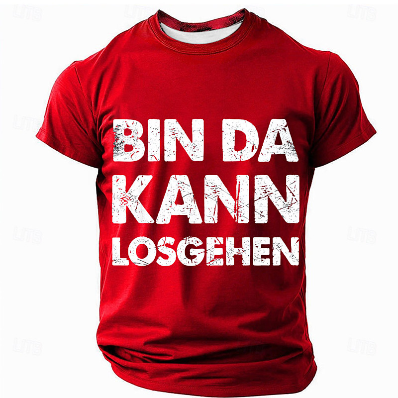 Men's Graphic T-Shirt 'Bin Da Kann Losgehen' German Phrase Ready to Go Lifestyle Short Sleeve Top