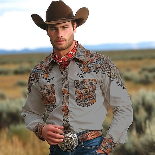 Per uomo Floreale Camicia Western Camicia con Bottoni Manica Lunga Vintage Western Abbigliamento quotidiano Uscire Weekend Primavera Autunno Inverno Camicie con Colletto Stampa 3D Tasca Frontale