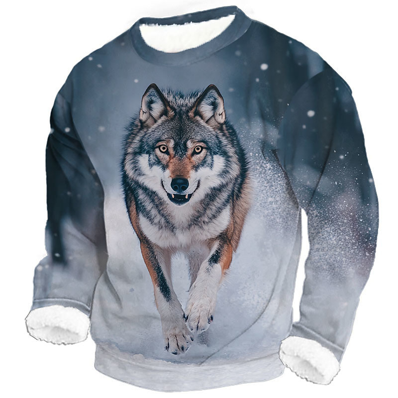 Men's Wolf Fleece Sweatshirt Daily Casual 3D Hunting Crew Neck Home Party Gift Streetwear Blue Brown 3D Print Fall Winter Designer S M L XL XXL XXXL