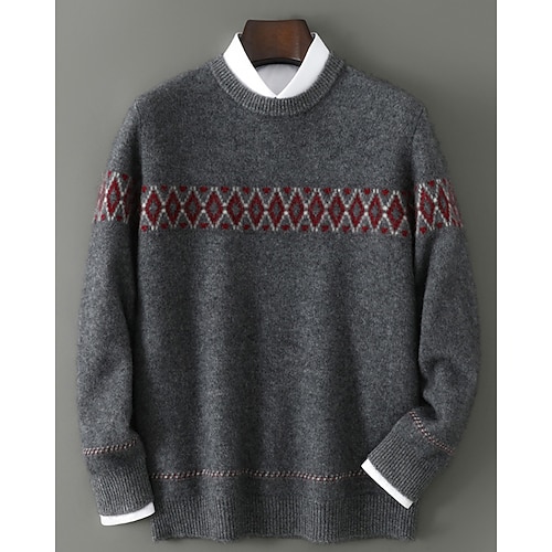 maglione natalizio da uomo in pura lana e cashmere di alta qualità, girocollo, classico pullover lavorato a maglia argyle, maglione Fair Isle, morbido, caldo e traspirante