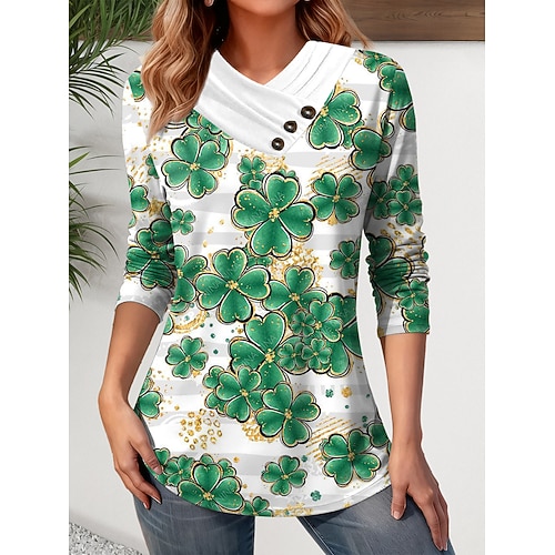 T-shirt da donna per il Giorno di San Patrizio grafica trifoglio moda classica casual maniche lunghe collo rotondo top regolari stampa quotidiana fine settimana nera bianca verde primavera inverno