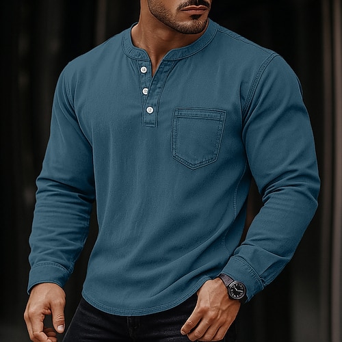 Per uomo Maglia Henley Camicia 100% cotone lavaggio acido Manica Lunga Henley Primavera Autunno Tutte le stagioni Vintage Retrò Vintage Casual Tasca Stile Vintage Lavato Casuale Nero Caffè Rosa