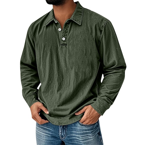 Per uomo Camicia vintage Polo in Cotone Affari Casuale Bavero Classico Manica Lunga Vintage Moda Tinta unica Semplice Stile Vintage Lavato Autunno Inverno Tutte le stagioni Vestibilità comoda Nero