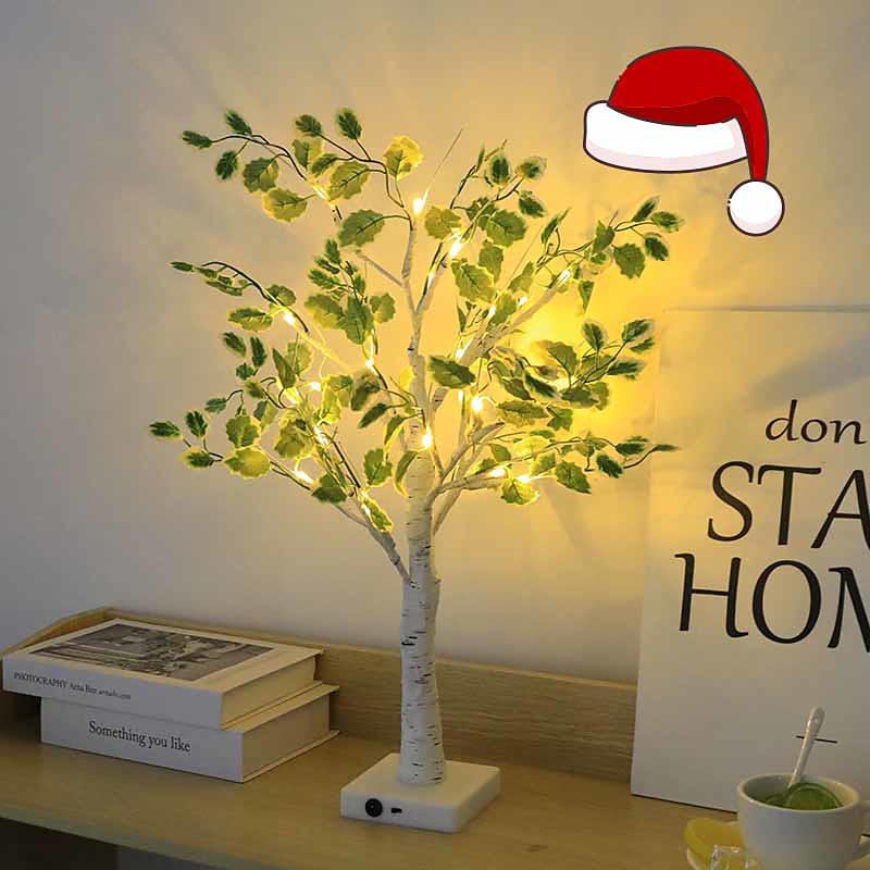 49cm Christmas Birch Ornament Lamp, USB Battery Powered Festive Decorative Light for Christmas Bedroom, Living Room, Restaurant