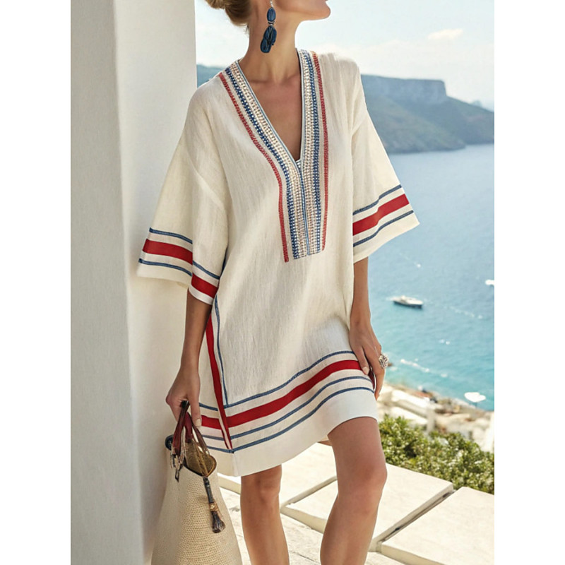 Women's Mini Dress Shift Dress Casual Outdoor Going out Loose Fit Floral Geometric Stripe Half Sleeve V Neck Blue White Dark Red Red Summer Spring