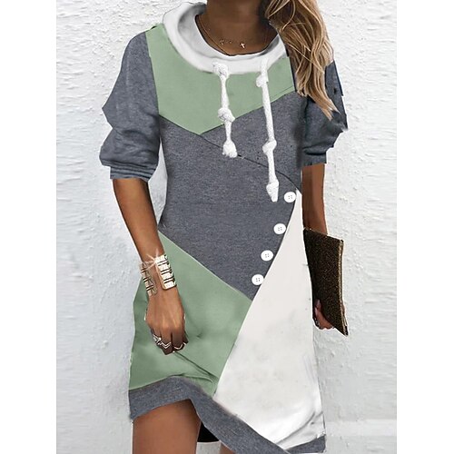 Women's Hoodie Dress Mini Dress Wrap Dress Shift Dress Party Casual Boho Outdoor Home Going out Regular Fit Graphic Geometric Long Sleeve Hooded Pink Blue Green Gray Spring Fall Winter