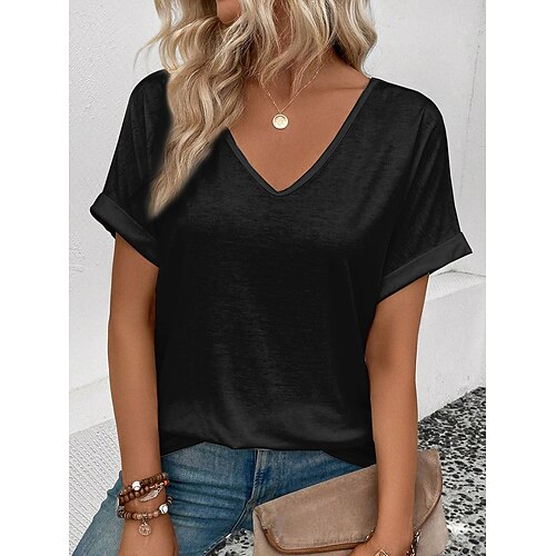 maglietta da donna casual a righe stampa manica corta top regolari scollo a V quotidiano bianco e nero estate