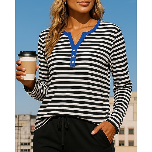 Per donna Felpa pullover Top casual Manica Lunga Top Athleisure Autunno Scollo a V A righe Di tendenza All'aperto Viaggio abbigliamento sportivo Abbigliamento sportivo Nero Rosa Rosso