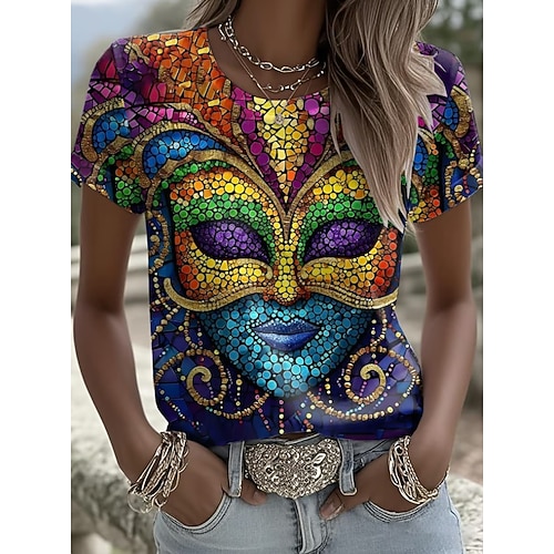 Carnevale Per donna Maglietta Floreale Vintage Elegante Classico Manica Corta Girocollo Top Regolari Quotidiano Stampato Nero Giallo Viola Verde Estate Primavera