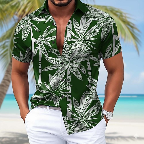 Per uomo Albero di cocco Piante tropicali Camicia hawaiana Camicia con bottoni Camicia Aloha Manica corta Hawaiano Ricorrere Da mare Per eventi Abbigliamento mare Estate Primavera Collo ripiegabile