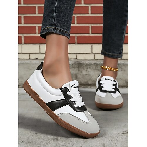 scarpe da ginnastica retrò con lacci da donna - scarpe casual da passeggio color-block per l'uso quotidiano, per strada e per le uscite del fine settimana