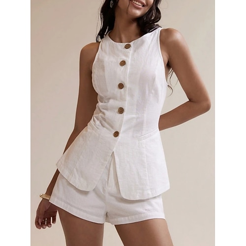 Per donna Set da due pezzi Camicia di cotone Set di Pantaloncini Senza Maniche Girocollo Semplice Moda Streetwear Casuale Quotidiano All'aperto Nero Bianco Verde militare Estate Vestibilità regolare