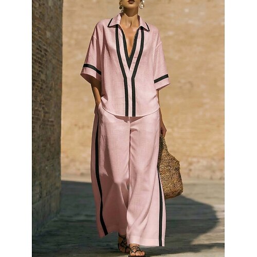 Per donna Set di Pantaloni Manica 3/4 Scollo a V Blocco di colori Moda Streetwear Casuale Quotidiano All'aperto Blu Nero Bianco Primavera Estate Vestibilità regolare